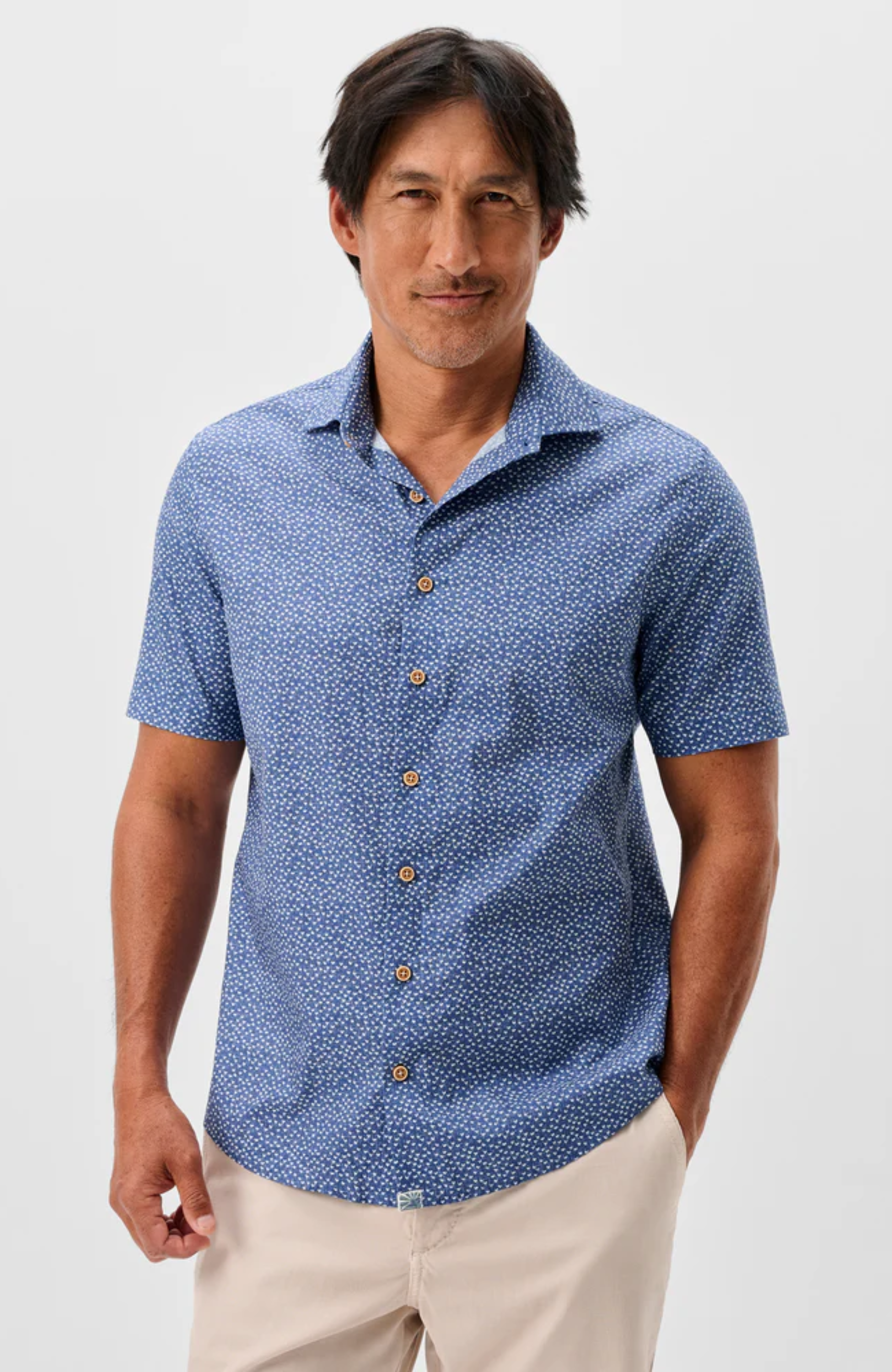 Johnnie-O - Cotton Blend Short Sleeve Button Down Shirt - Patel Printed Slub Cotton