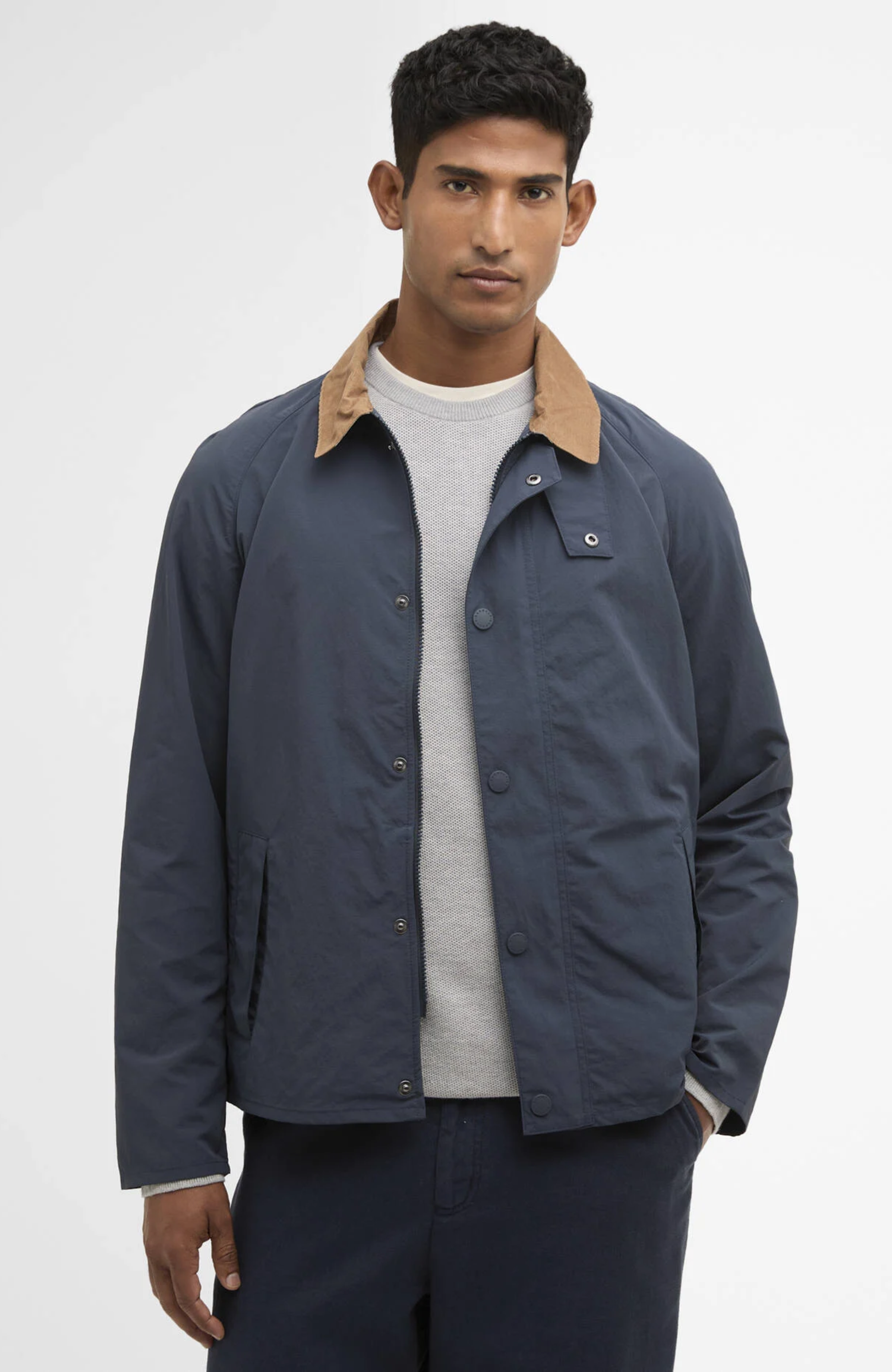 - This essential outerwear piece features a sit-down corduroy collar with a throat tab for extra protection against the wind.