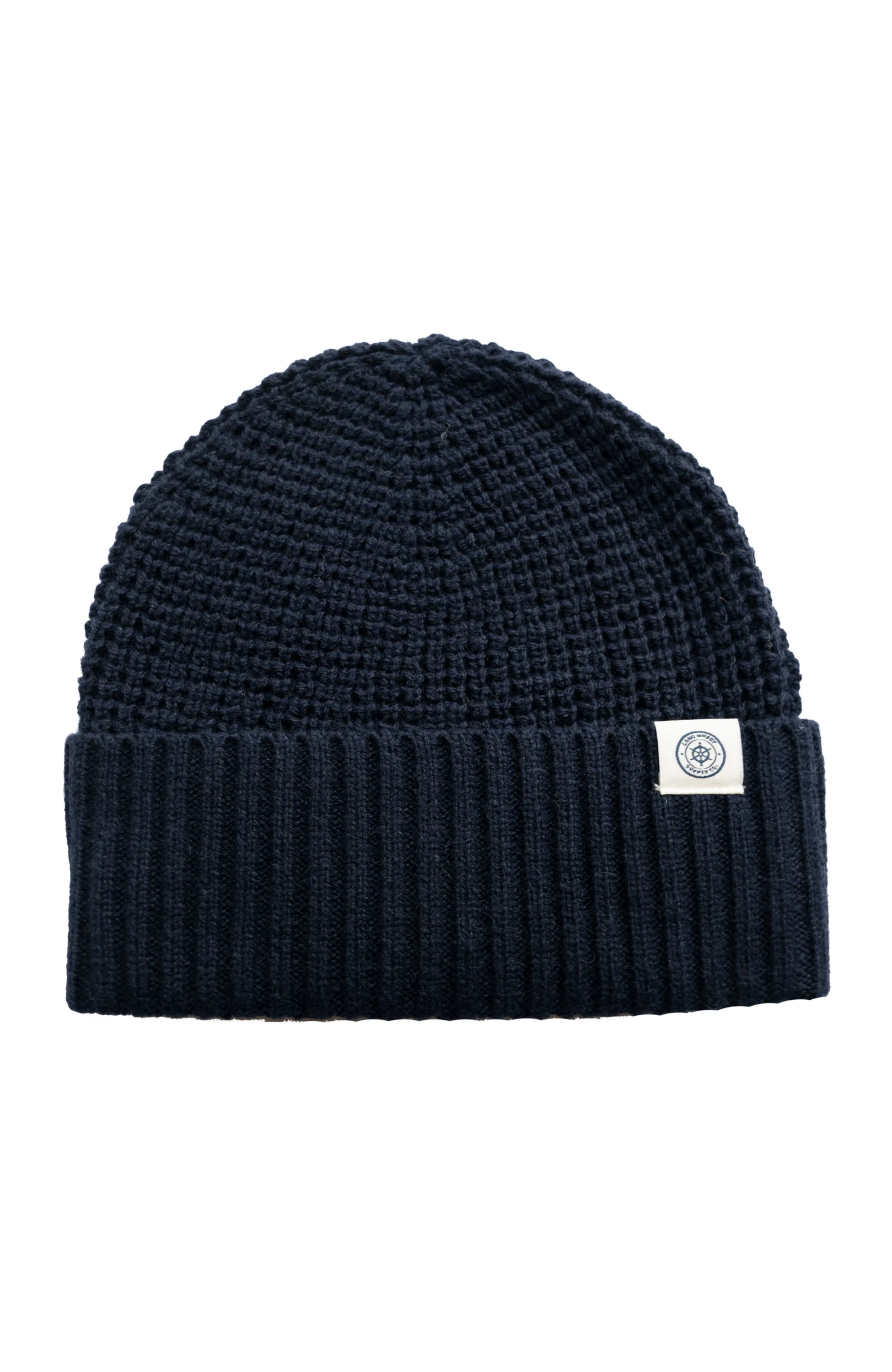 - The first fisherman's caps knit with a soft blend of recycled oyster shells, recycled water bottles, and natural lambswool.