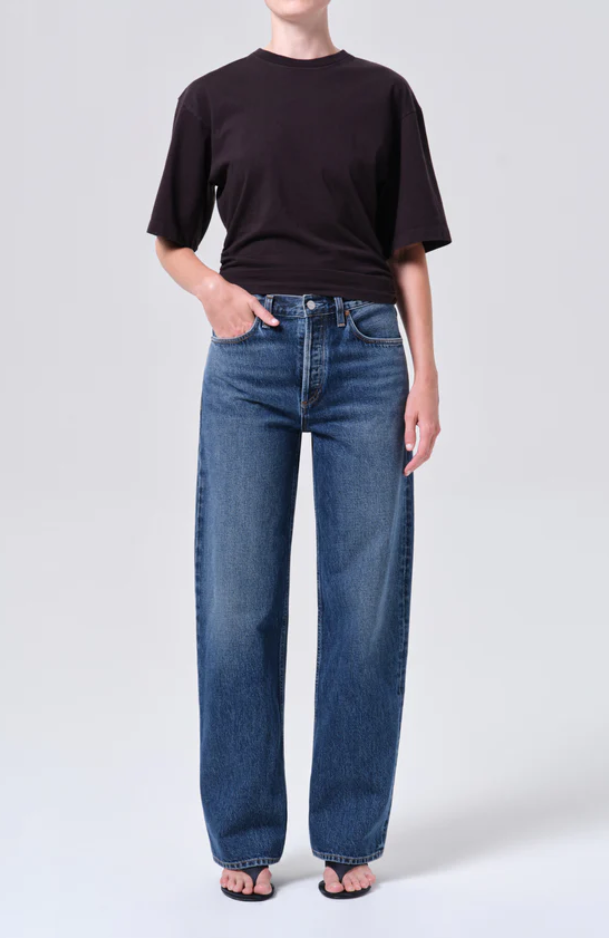 - Designed in a bright dark indigo wash, it features a mid-rise waist and a relaxed wide-leg silhouette that moves effortlessly while maintaining structure.