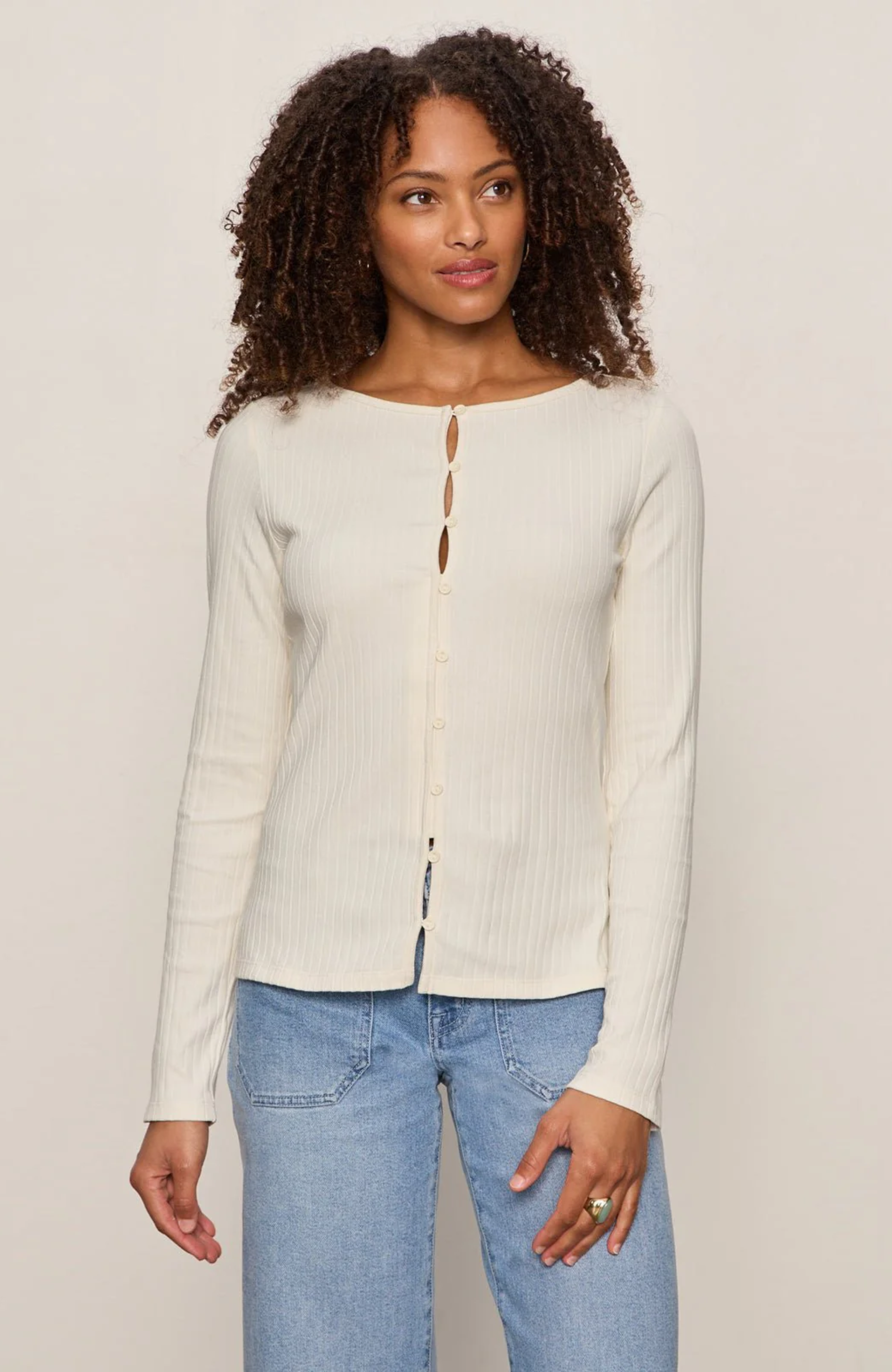 - Made from wide-rib cotton with plenty of stretch, this figure-hugging top features yarn-dyed stripes and a button-and-loop placket for a delicate detail.