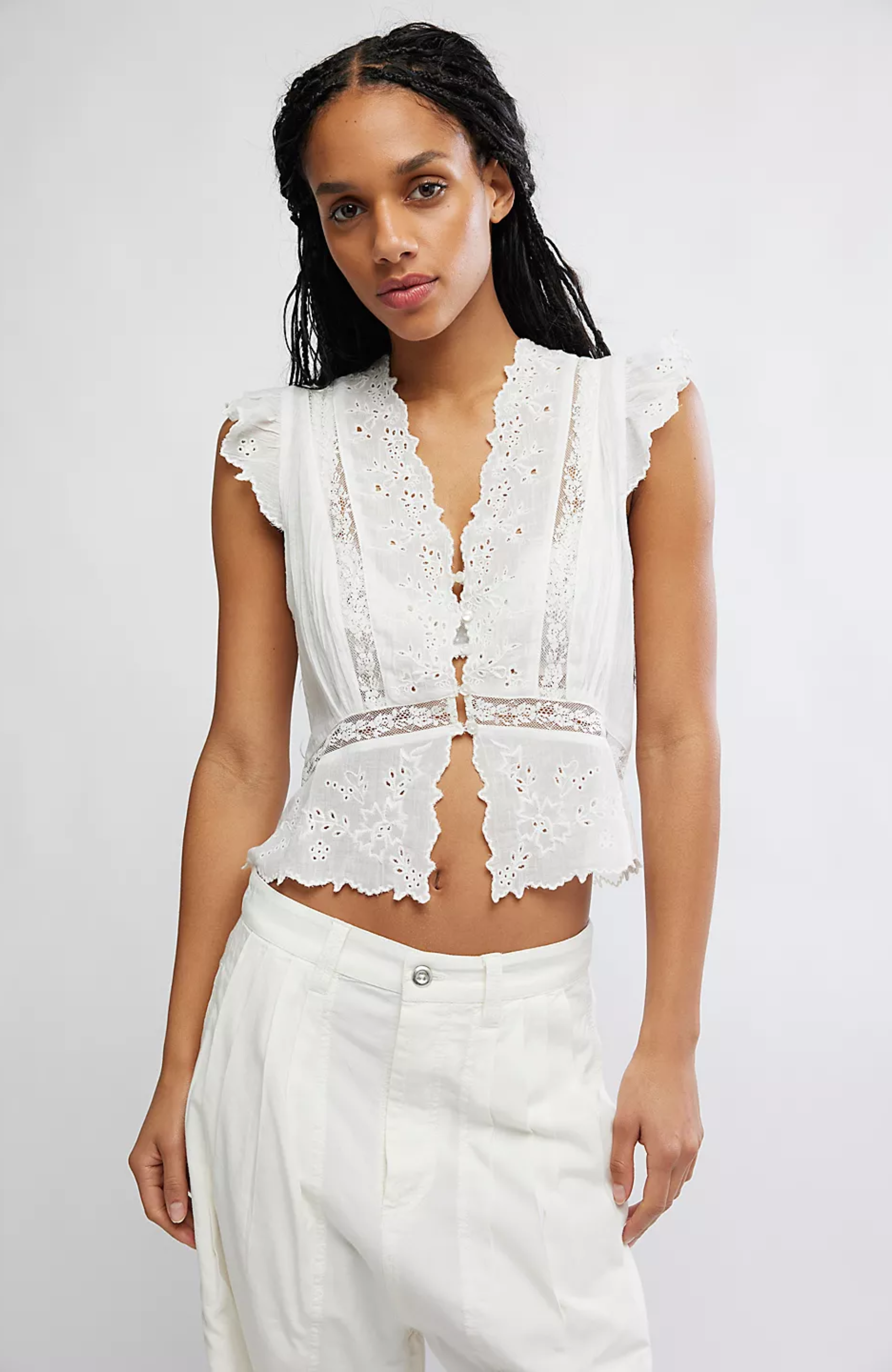- Step into a world of dreamy elegance with this ethereal top, featuring a breezy cotton fabrication, a relaxed, peplum-inspired silhouette, and embroidered details for a femme flourish.