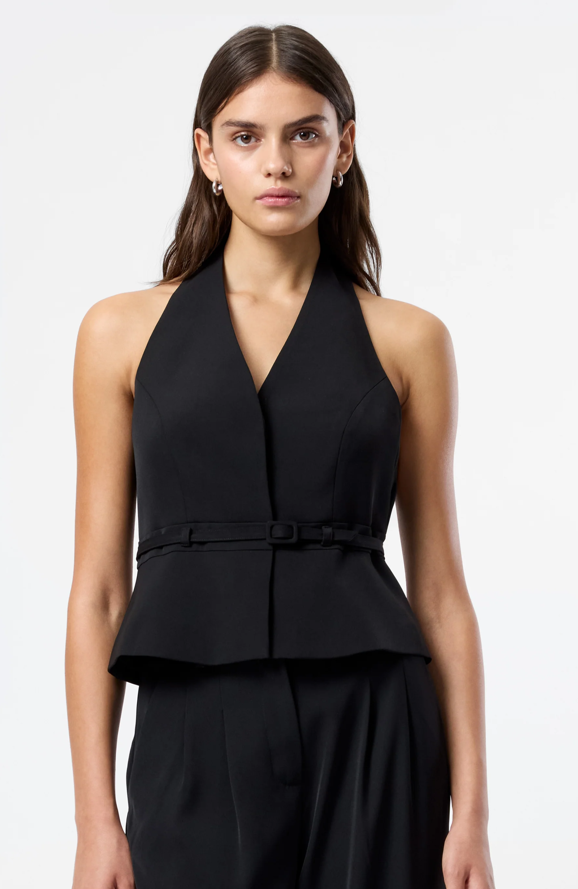 - The Harry Suiting Belted Halter Top is a tailored halter with a deep V neckline and a waist-cinching belt that keeps things sleek.