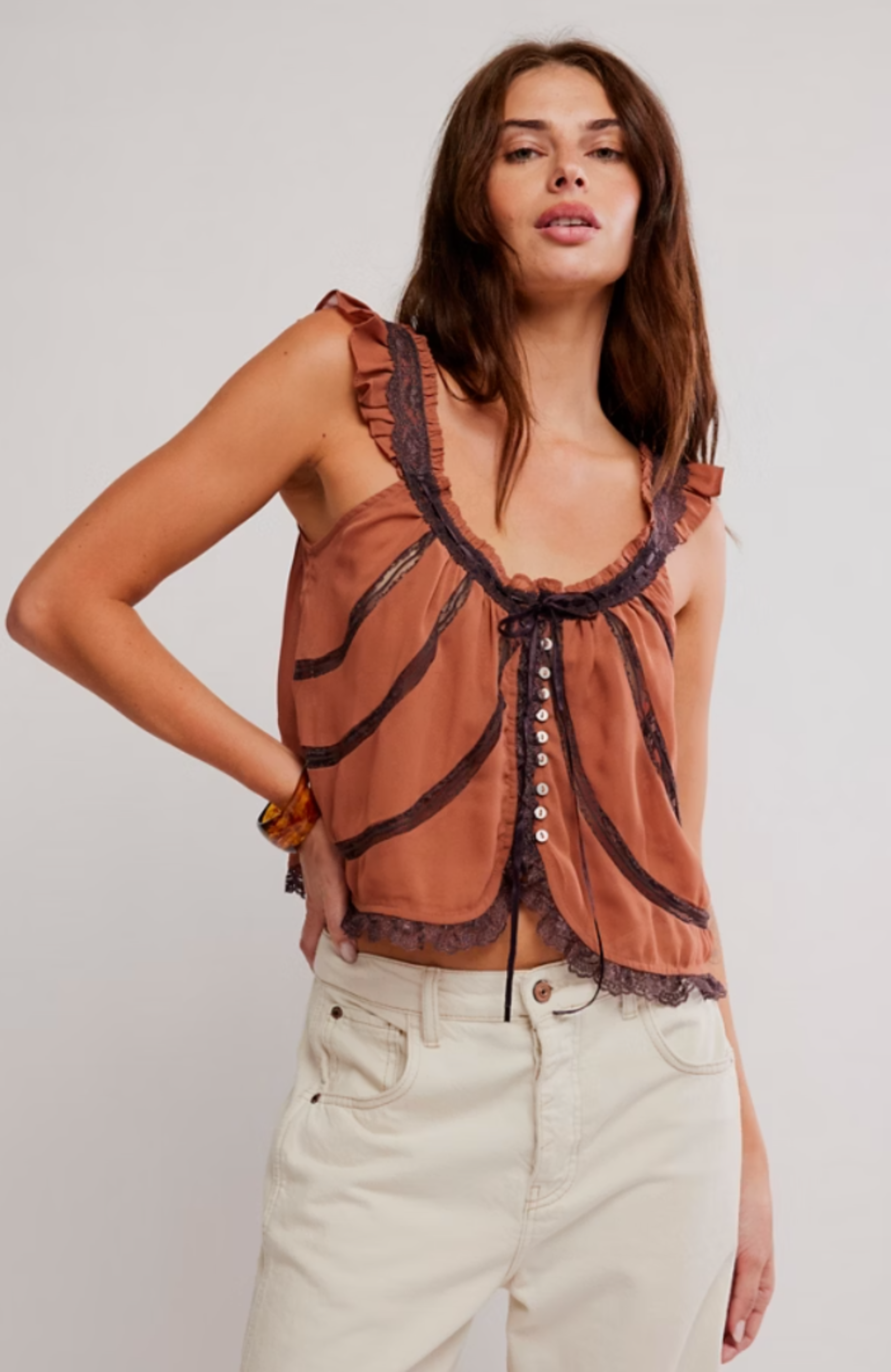 • Forever femme and vintage-inspired, this delicate tank features a lightweight fabrication, dainty lace panels, and a breezy silhouette for an effortless feel.