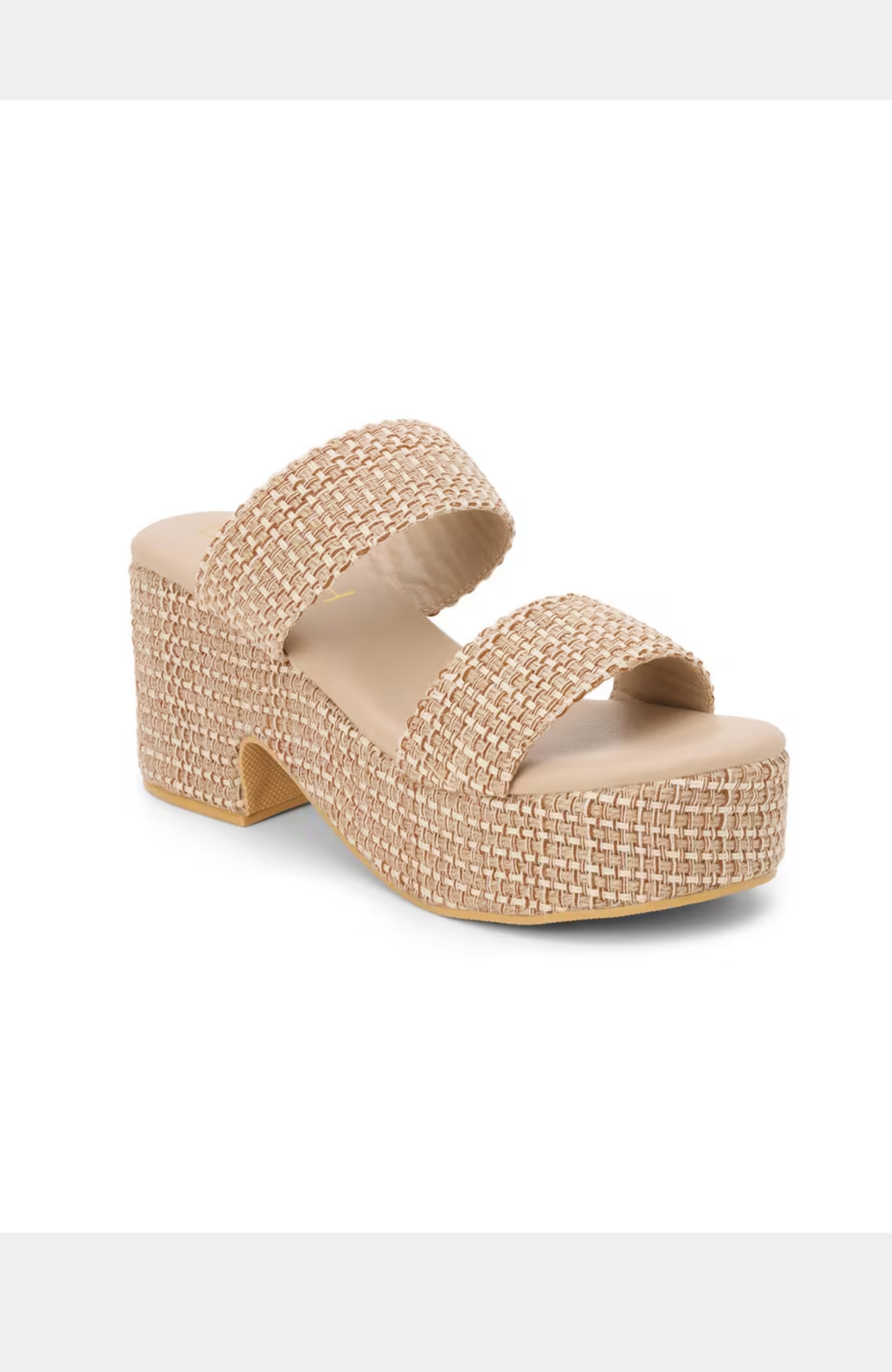- Trendy raffia or fabric upper