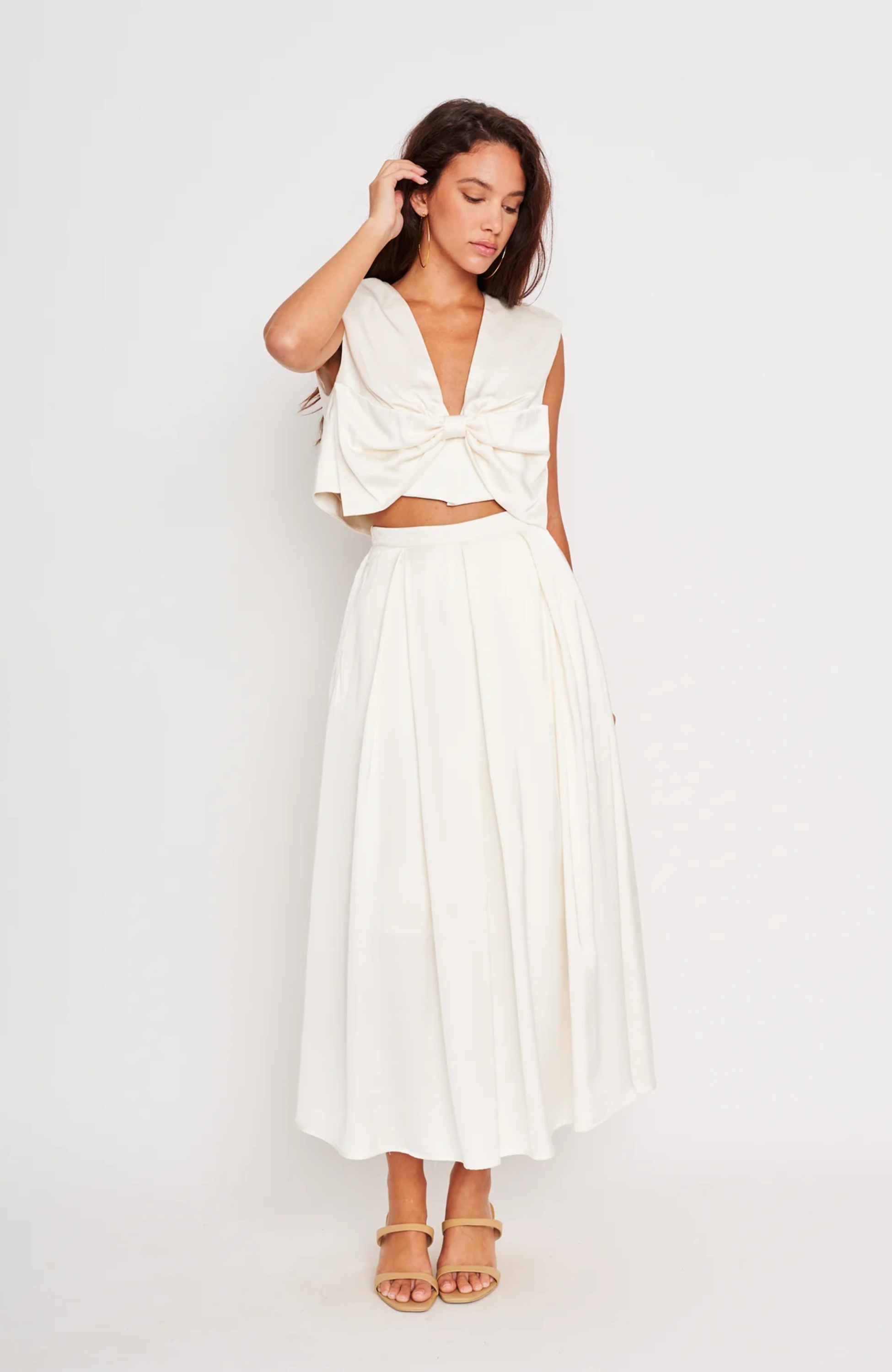 - A chic fit-and-flare midi skirt in classic Ivory, the Reina skirt’s elegant pleating details add texture and movement.