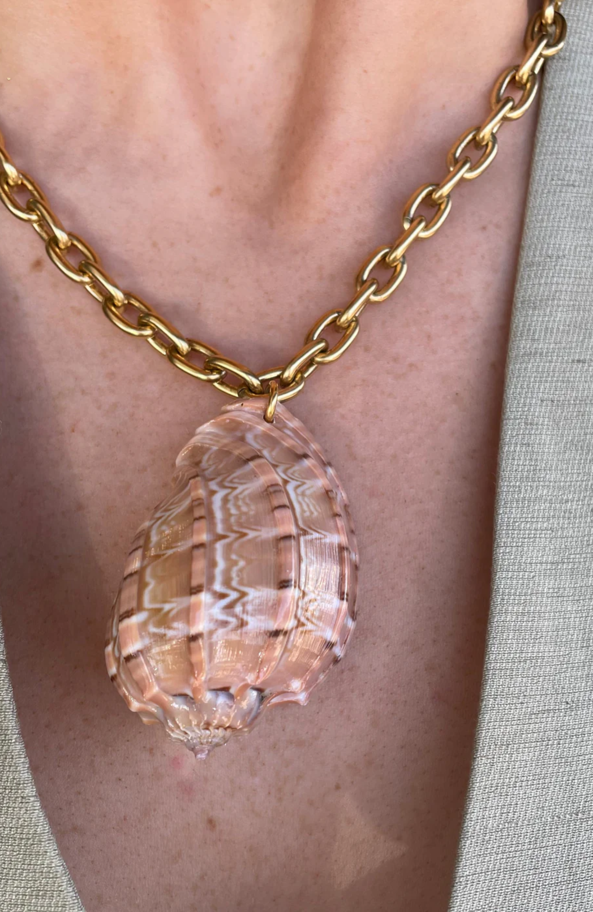 - Shell on gold link chain.