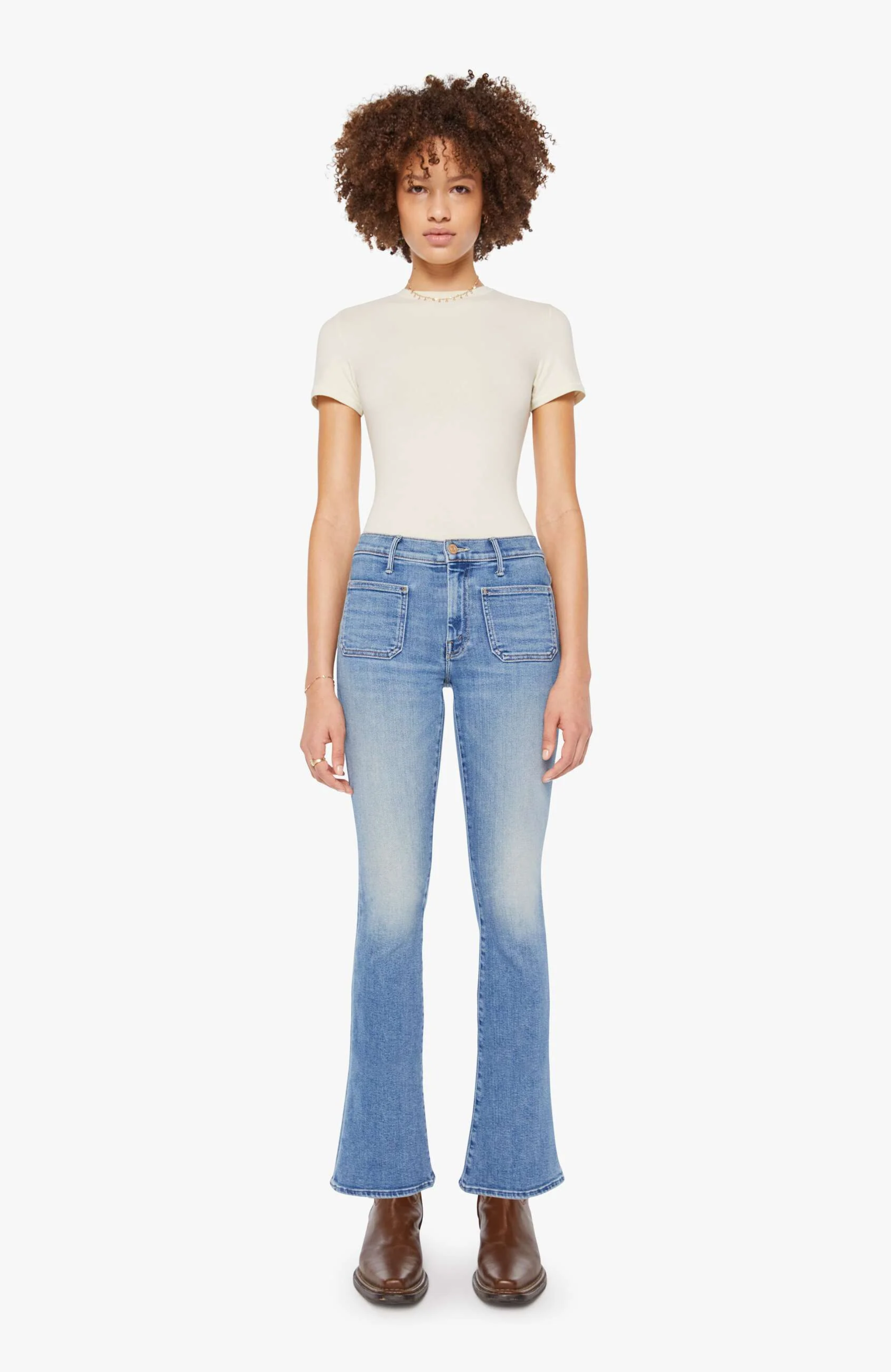 - This cult-favorite flare has a mid rise, zip fly, patch pockets, a 31-inch inseam and a clean hem.