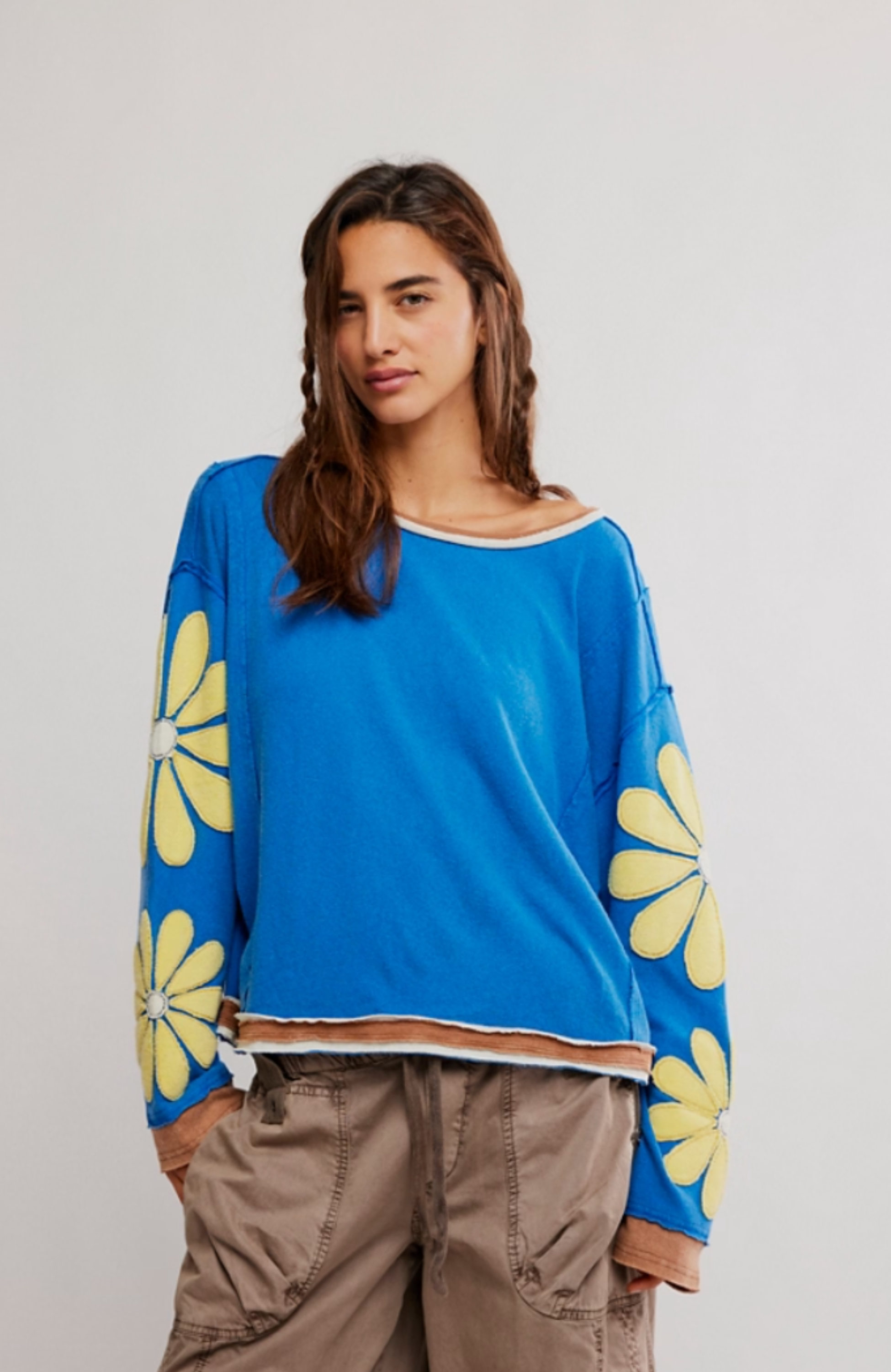Soft cotton fabrication, subtle scoop neckline, drop-shoulder sleeves, layered detail, raw trim, oversized star detail at sleeves, raised seaming