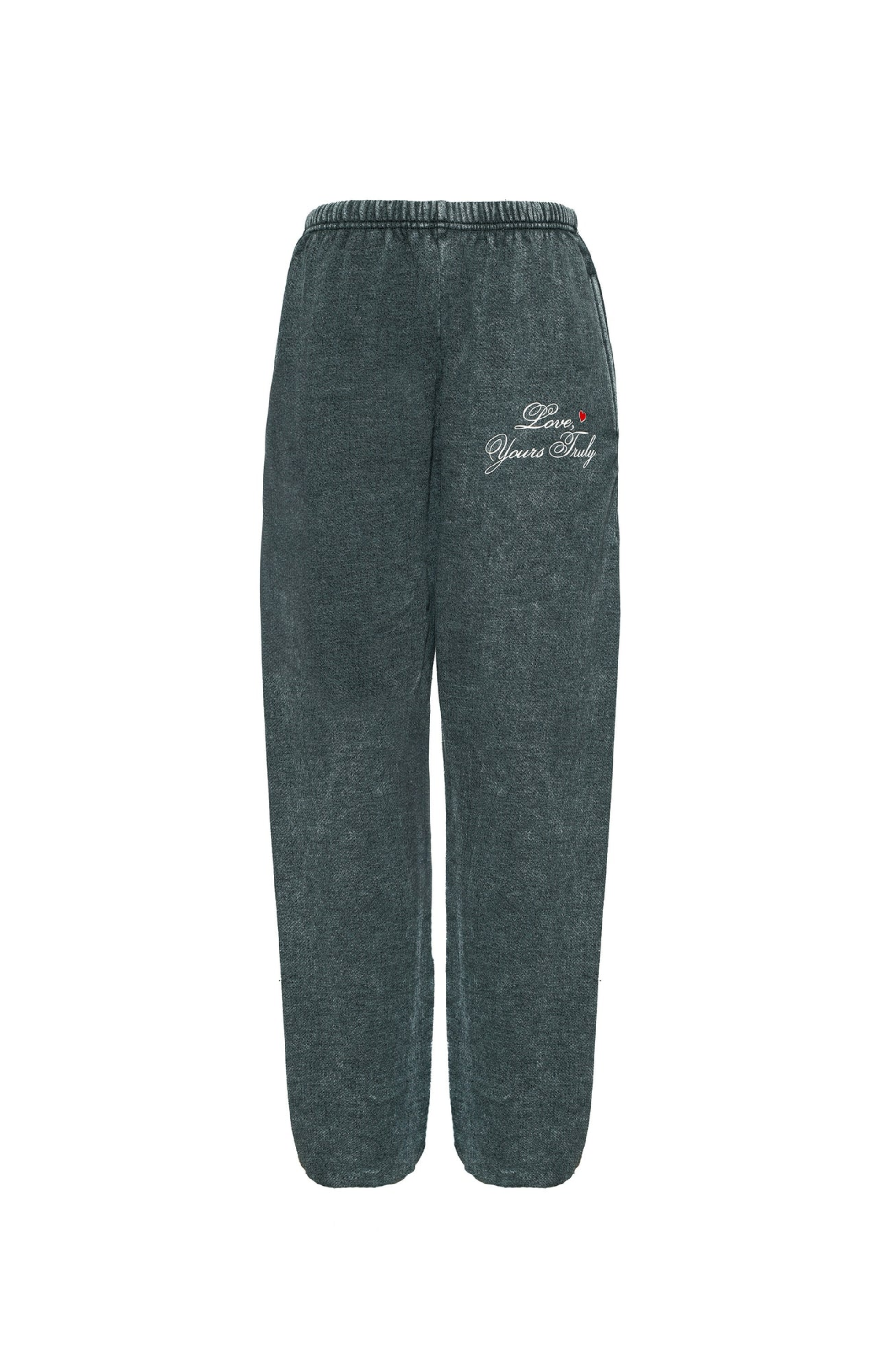 - These charcoal green wash sweatpants feature a relaxed fit with an elastic waistband and cuffs for everyday comfort.
