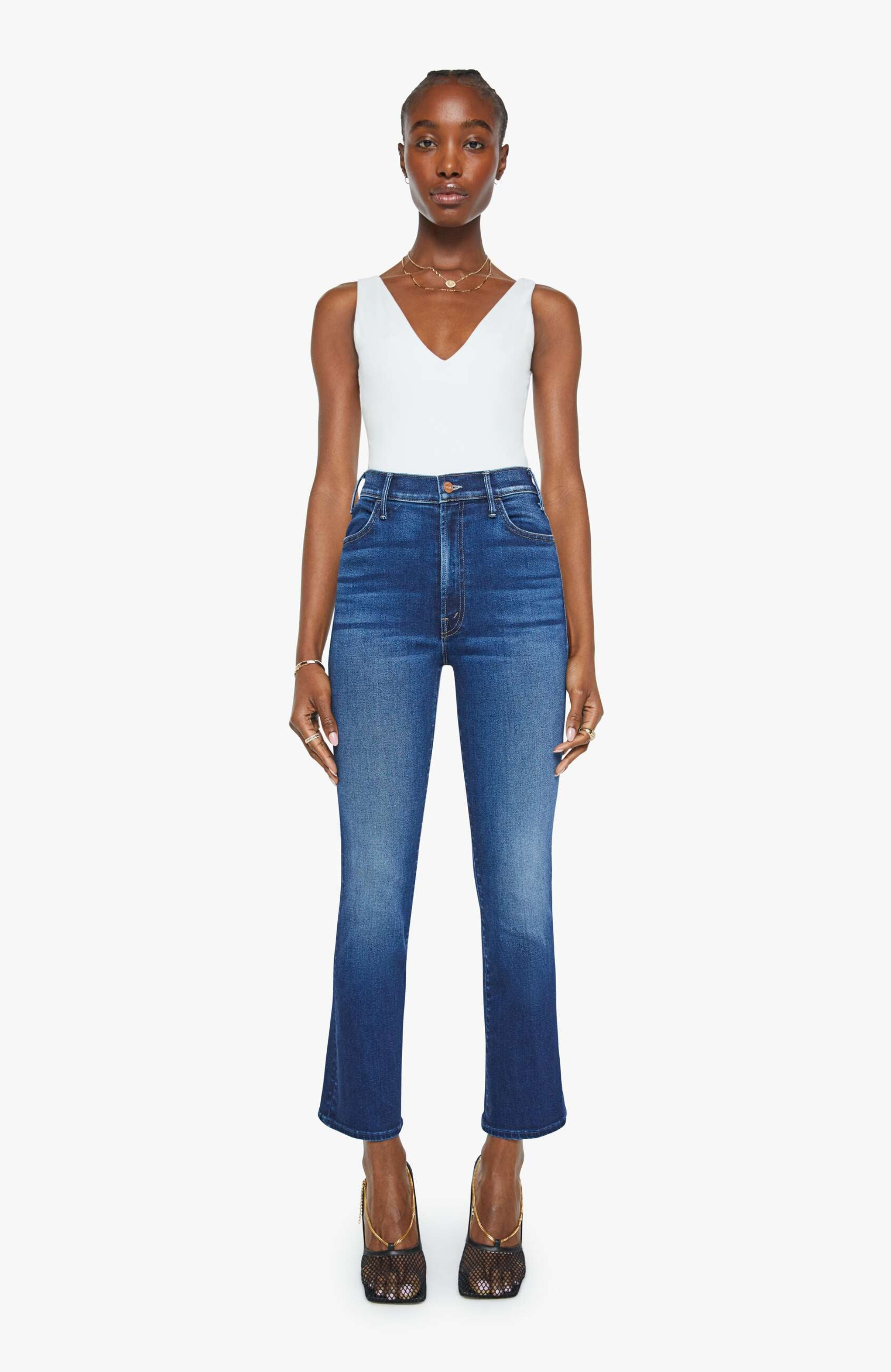 - This bestselling high-rise flare has an ankle-length inseam and a clean hem.