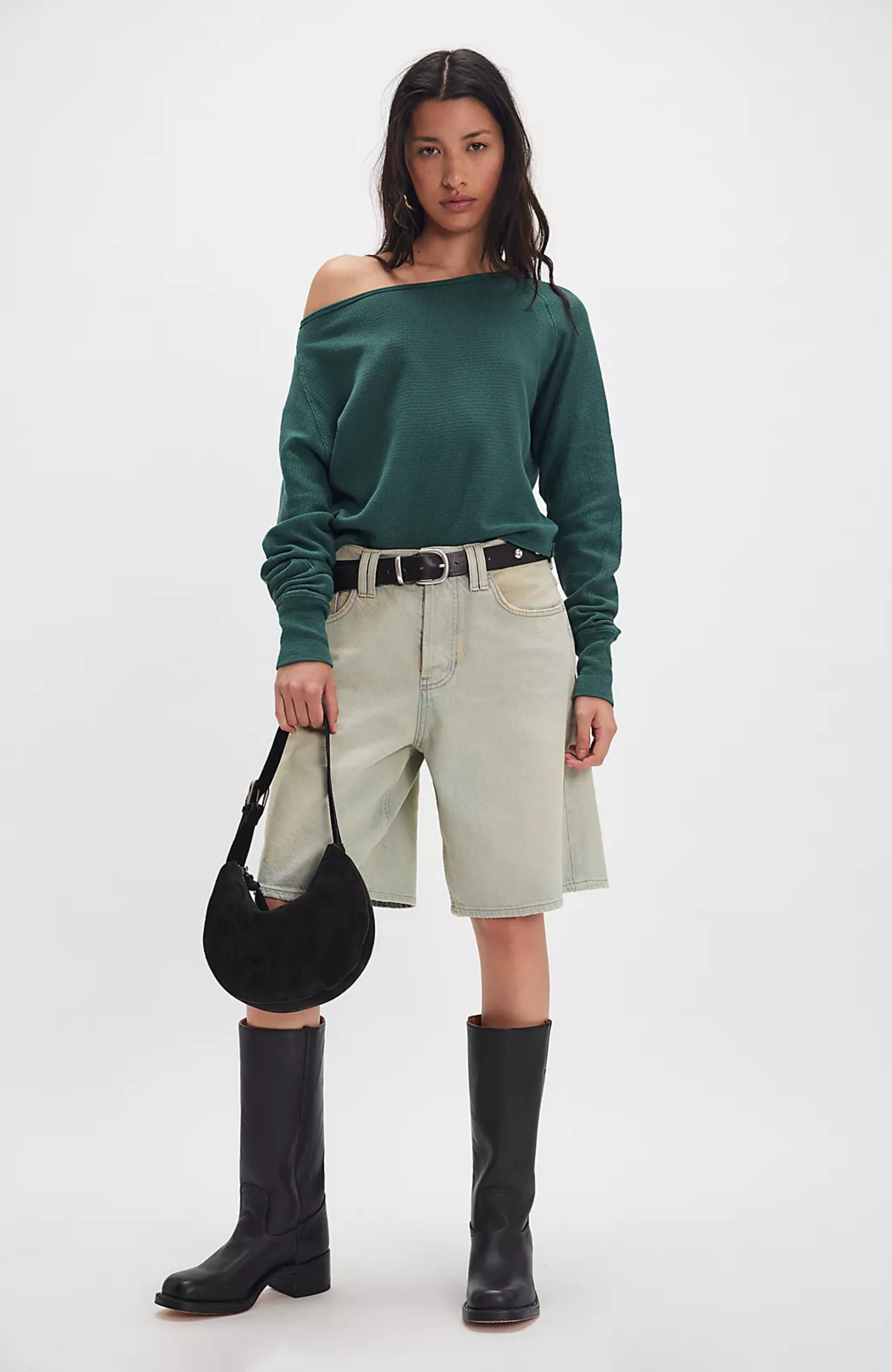 - A cozy base for endless outfitting, this long sleeve is featured in a thermal fabrication with a flattering boat neckline and slouchy dolman sleeves.