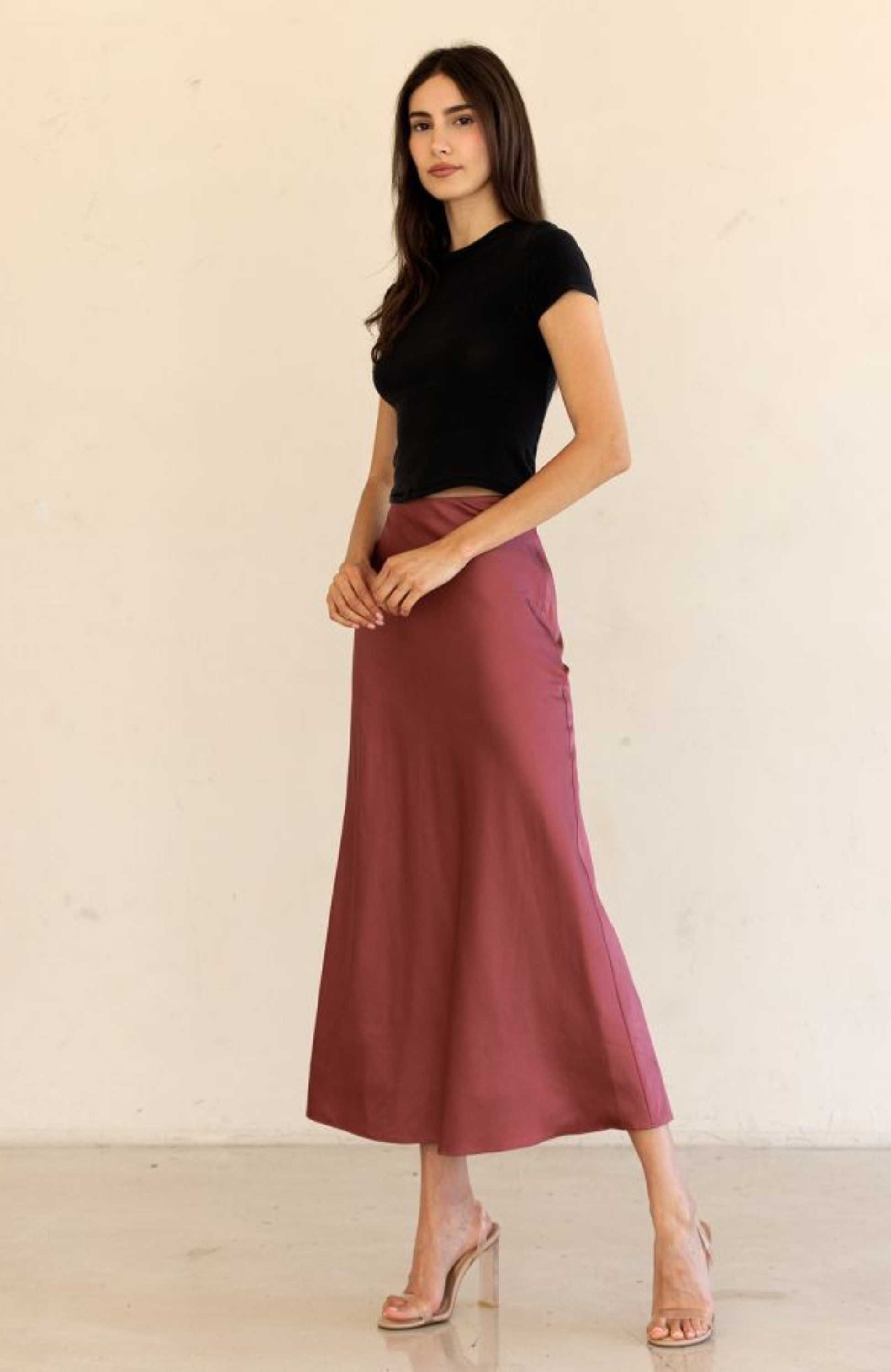 Solid Silk Midi Skirt